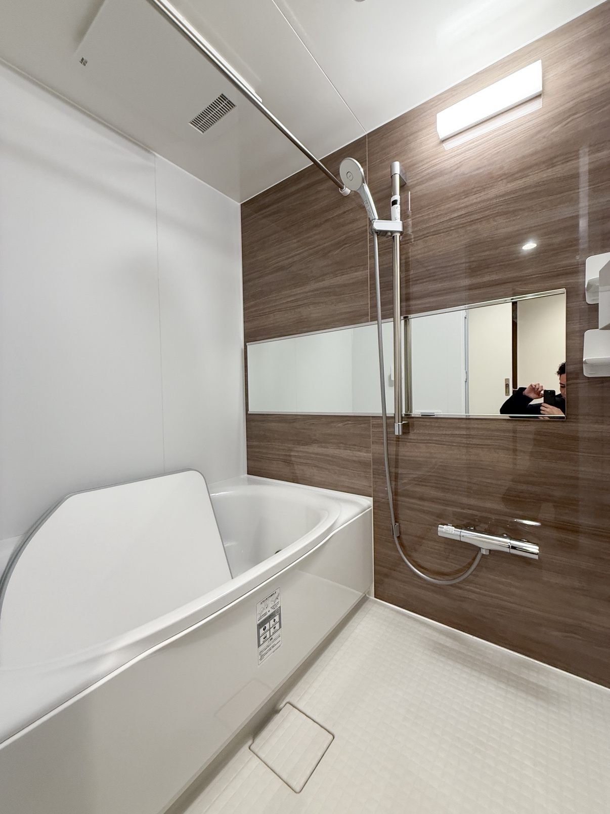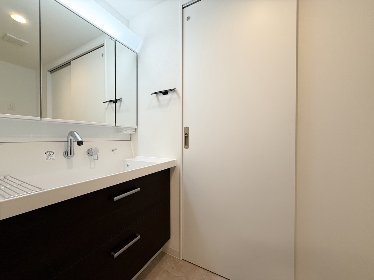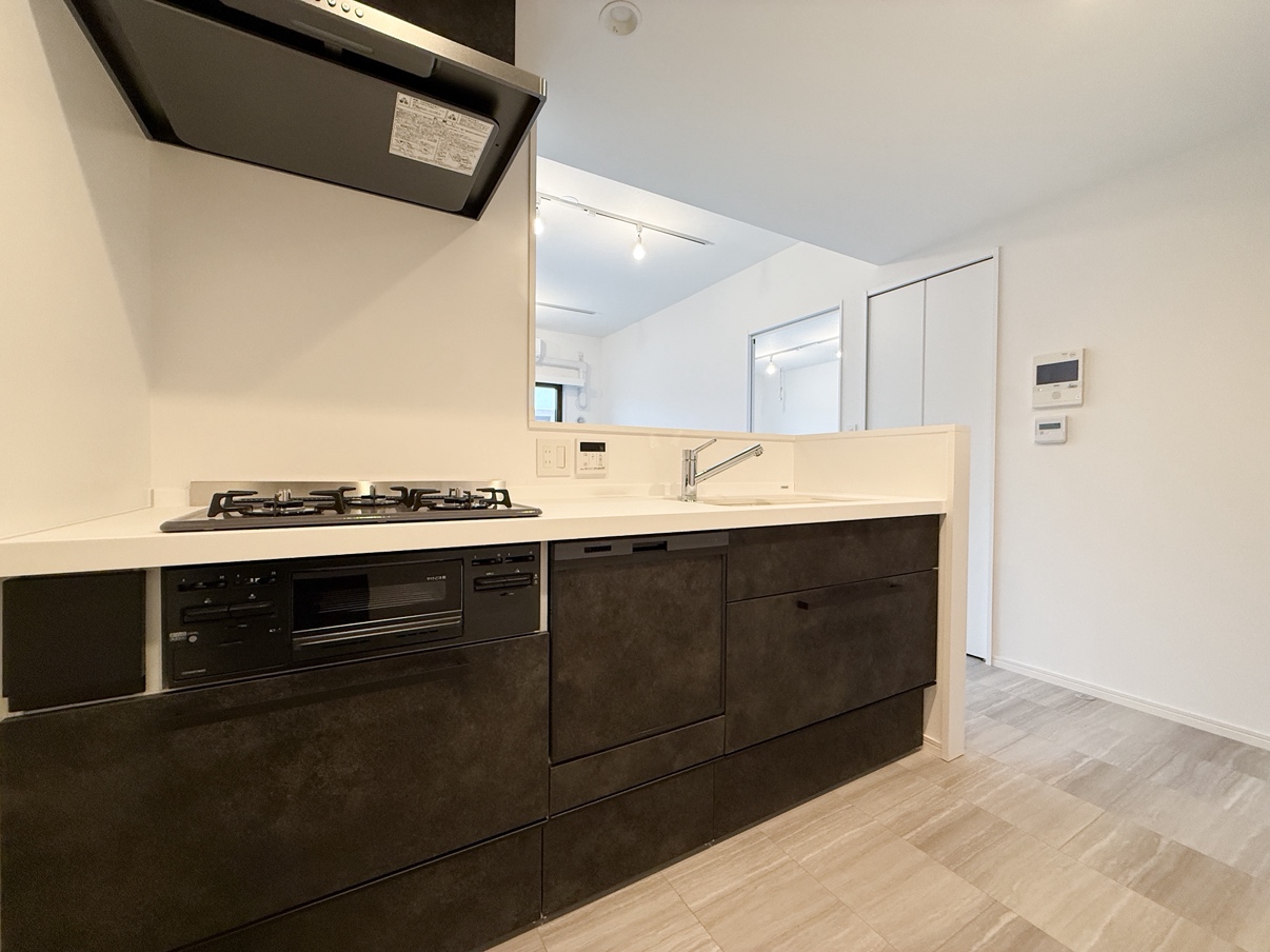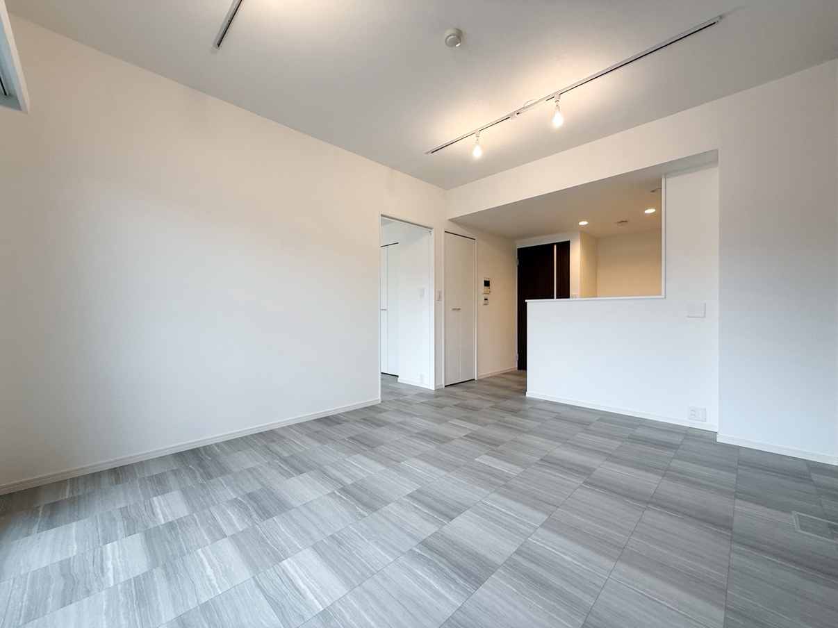 既存間取りを生かしながら、和室→洋間変更、キッチン、浴室、洗面台、床暖房等の設備も全て更新を行い、見た目だけでなく使いやすさも追求いたしました。カーペットからフローリングへの変更、玄関にはエコカラット、下駄箱にはフットライトを新設、グレージュ系統の内装にまとめることで、高級感と洗練された空間に仕上げました。再販リノベーション事例として、ぜひ参考にしてください。